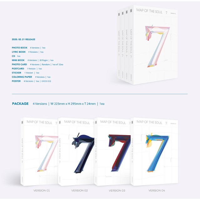 7 version 1 dengan harga rp330 000 dari toko online bts merchandise store jakarta utara. Answer and precedes the band s love yourself. 7 cd version bts 방탄소년단 released february 21 2020. Map of the soul.