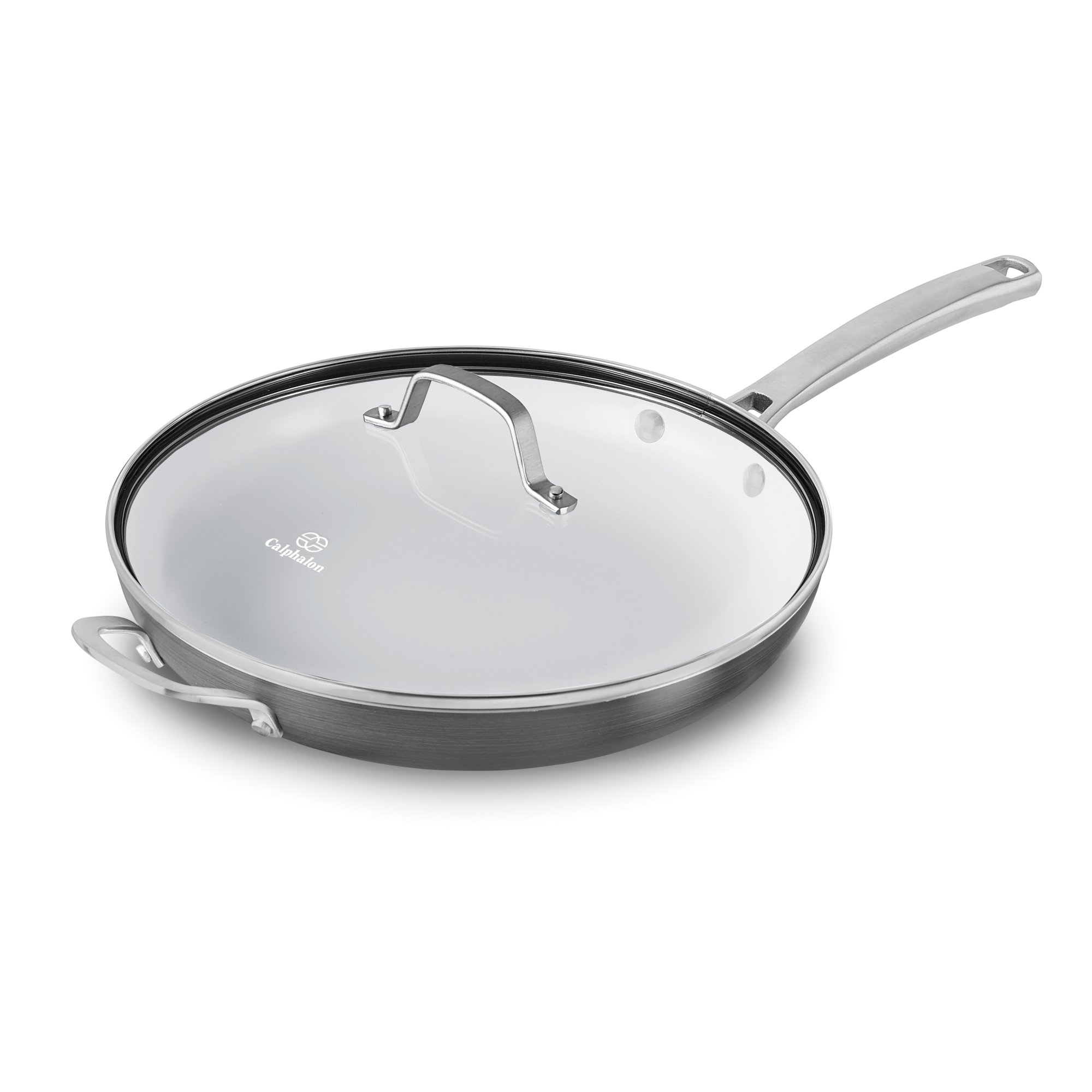 The stunning contemporary design looks beautiful in the kitchen and heavy gauge hard anodized aluminum ensures even heating. Simply calphalon nonstick 12 jumbo fryer pan with cover. Calphalon contemporary nonstick 12 in. 64 99 54 99 compare compare.