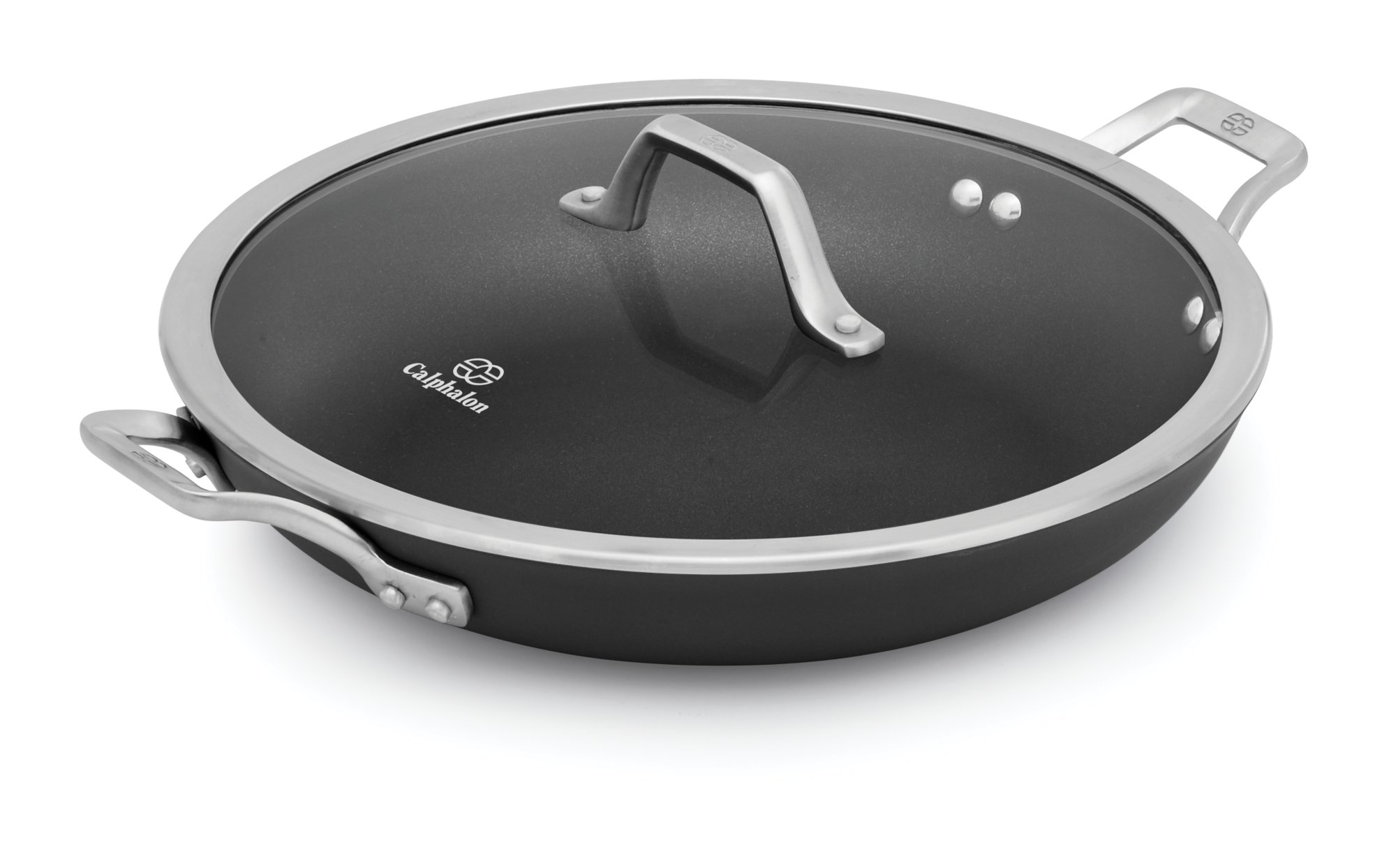 Calphalon nonstick fry pan 12. Jumbo fryer pan is made with dual layer nonstick for extra easy food release and cleanup and constructed from durable hard anodized aluminum for fast and even heating. Beautifully designed and engineered to hold up to the rigors of metal whisk spoon and spatula use the calphalon williams sonoma elite nonstick 12 in. Calphalon classic nonstick 2 pc. The durable hard anodized construction allows for even heating with no hot spots and is dishwasher safe for easy cleanup.