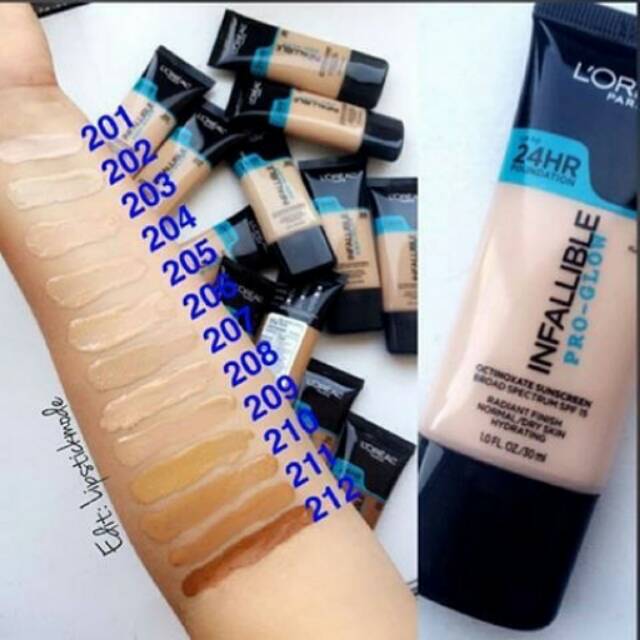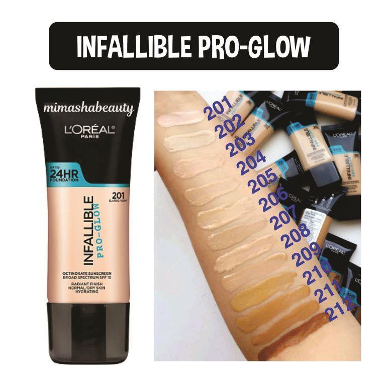 L oreal infallible pro glow 24hr foundation sun beige 208 new 1 fl oz. The l oréal paris infallible pro glow foundation offers 12 shades to choose from ranging from fair to deep. Infallible pro glow liquid foundation just landed from the usa and exclusive to amazon stock up on pro glow foundation for the first time in the uk while stocks last. It is geared toward normal to dry skin.