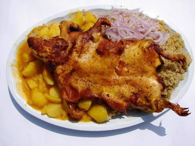 Hay otras maneras de realizar un plato con cuy asado ya que puede ser en sopa cuy guisado entre otras formas. El cuy asado es otro de los platos típicos que representan la sierra de ecuador o los andes. Cordero guisado y cuy frito santa cruz de chuca. Este plato es generalmente de carne de cerdo aunque también se usa carne de vacuno o de venado este potaje es muy pedido por lo visitantes así como por los moradores de nuestra cajabamba en un reencuentro de amistad siempre se tiene.